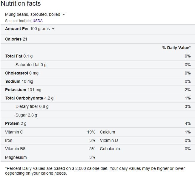 Below are nutrition values of boiled beans vs boiled sprouts: